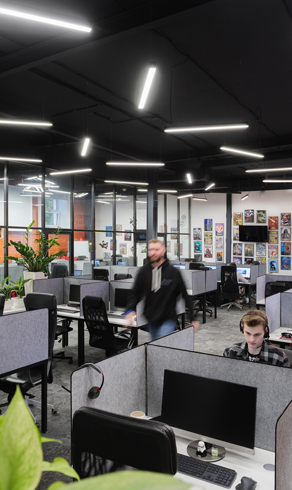 Стильный офис с PlayStation, массажными креслами и просторной зоной отдыха
