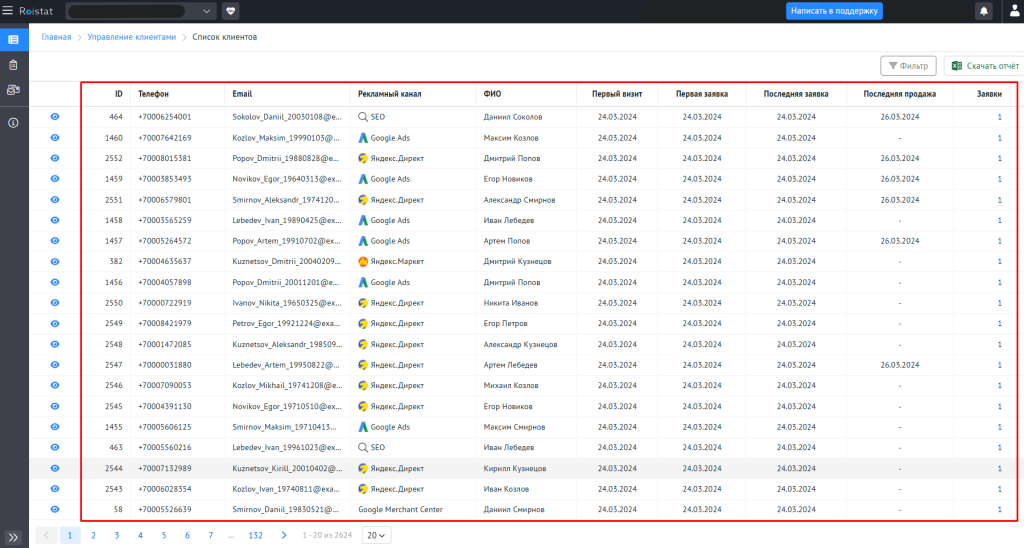 Roistat — маркетинговая платформа, которая объединяет данные из рекламы, сайта, CRM, телефонии, виджетов и маркетплейсов в единую систему отчётности. Показатели обновляются автоматически — без ручной сводки таблиц.