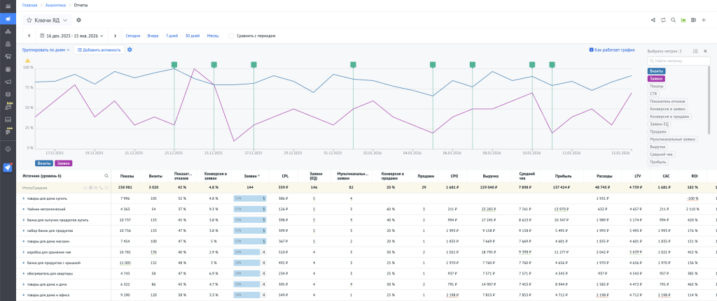 Базовый инструмент, который объединяет расходы, поведение на сайте, заказы и финансовые показатели.
