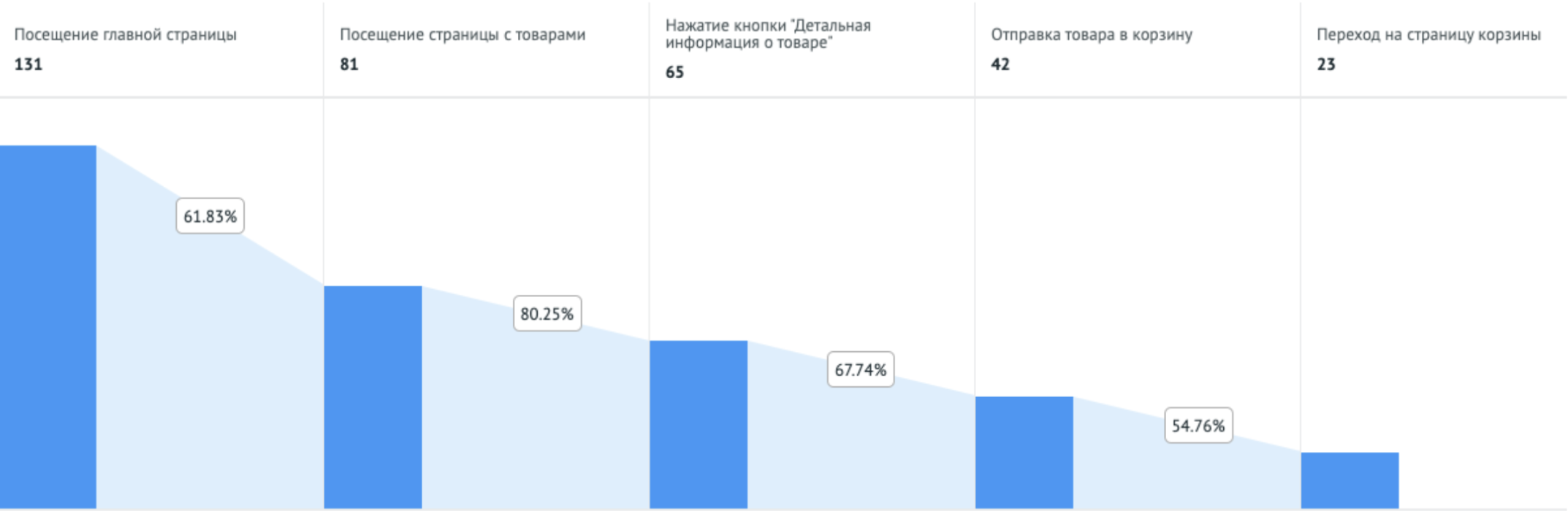 В отчётах видно, на каких этапах чаще всего прерывается путь и как это различается по источникам, устройствам и другим параметрам. Это позволяет находить конкретные точки просадки и проверять изменения на сайте.