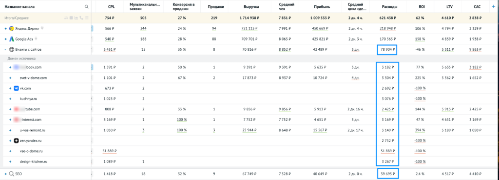 - Добавьте ручные расходы по SEO или другим каналам, которые сейчас не учитываются.