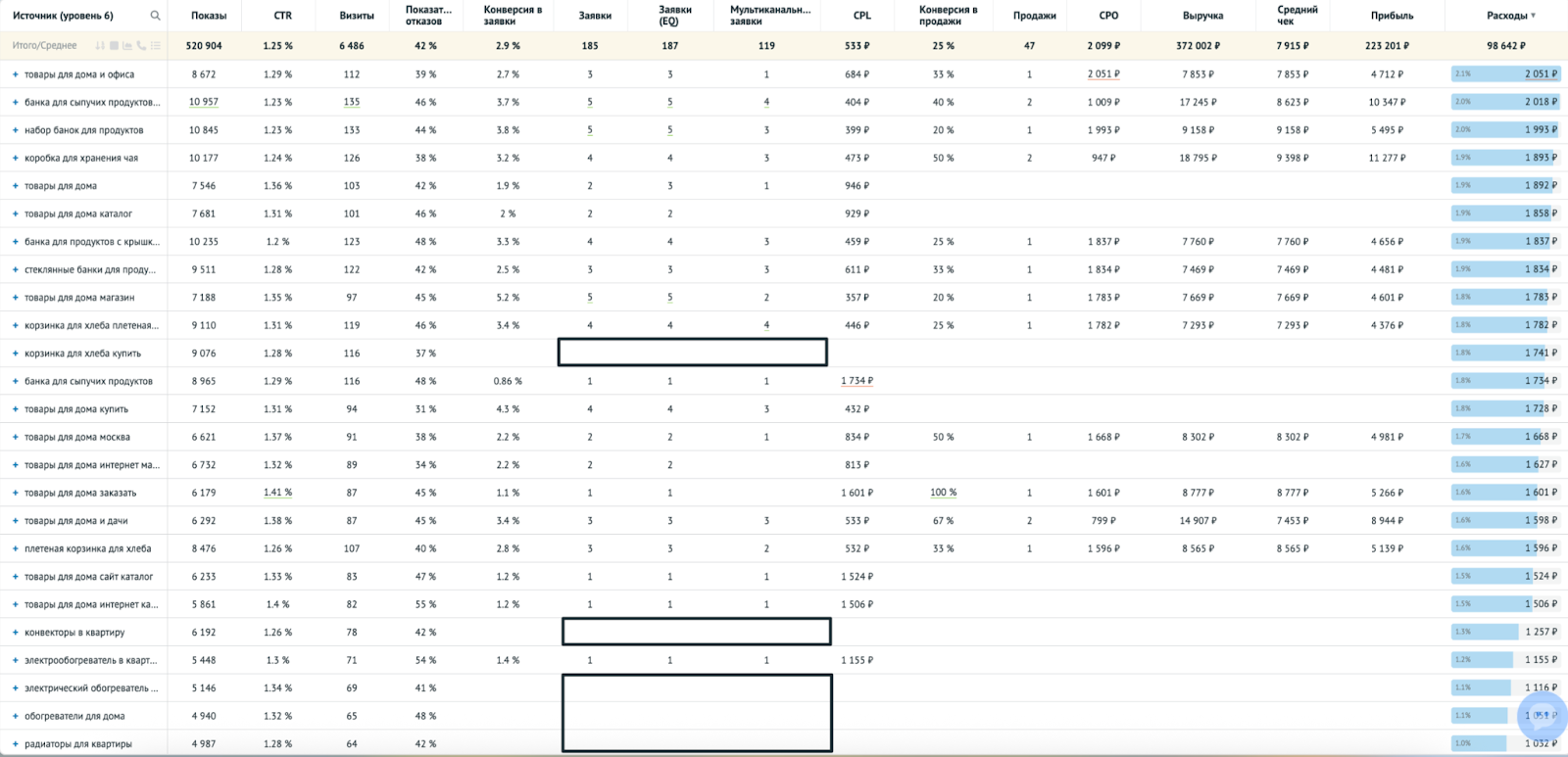 Далее оптимизация шла на уровне конкретных связок и ключевых запросов. Нецелевые кампании отключались, бюджет перераспределялся в более результативные направления.