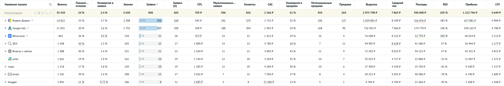 - расходы не связываются с доходом, а сравнение каналов становится условным.