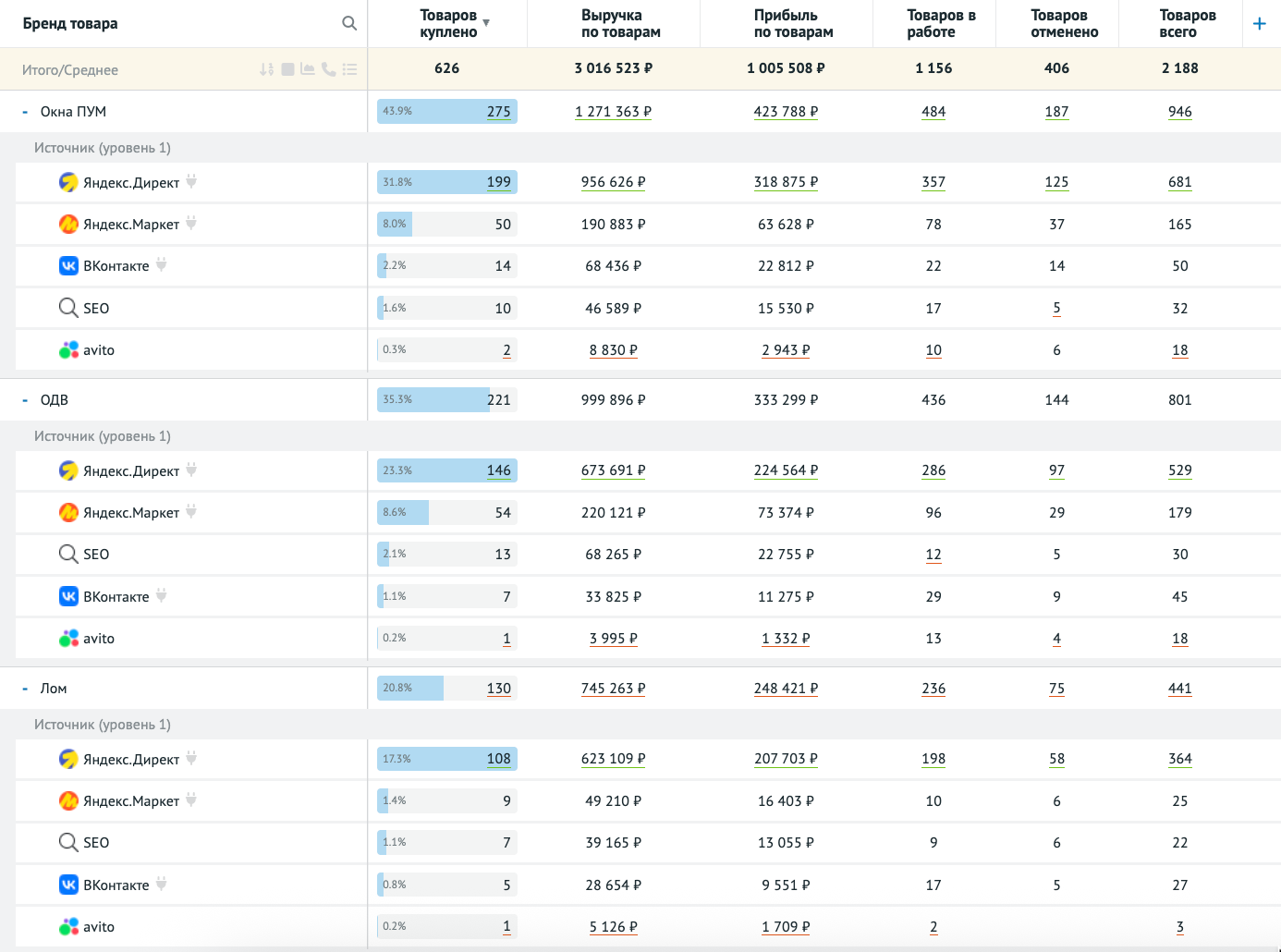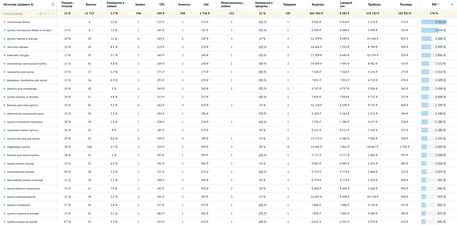 - отчёты по источникам на уровне итогового результата, а не кликов.