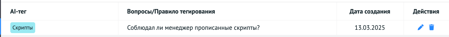 - искусственный интеллект проставляет AI-теги — фиксирует важные события в разговоре: например, «клиент выражает недовольство», «возражение по цене», «не предложил продукт». Таким образом, руководитель сразу работает только с «рискованными» или проблемными диалогами.