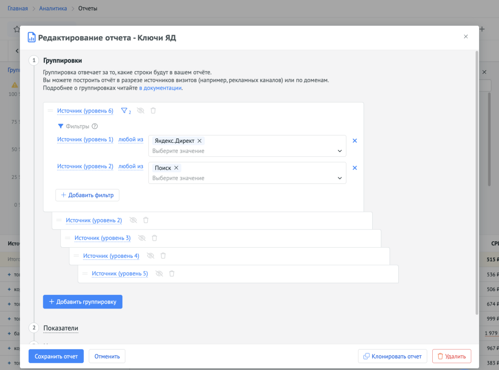 Добавьте мультиканальные показатели в отчёты по ключевым словам поисковых кампаний и в отчёты по объявлениям РСЯ. Это позволит увидеть, какие элементы рекламы участвуют в цепочке до конверсии, даже если не являются последним касанием — и избежать ошибочного отключения таких источников.