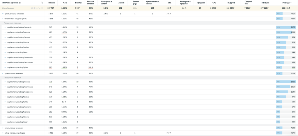 - кампании с низкой CPL с их фактической конверсией в продажу.