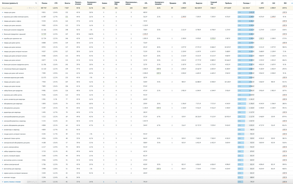 После подключения Roistat компания настроила отчёт по каналам с показателями выручки и прибыли. Это позволило определить кампании и ключевые слова с отрицательным ROI.