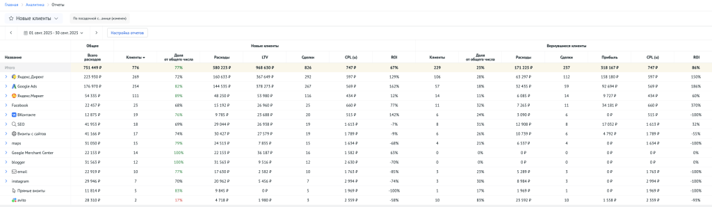В результате Roistat закрывает широкий спектр задач — от оперативного контроля показателей до глубокого анализа эффективности каналов, контента, коммерческих условий и поведения клиентов. При этом маркетинг, продажи и руководство опираются на один и тот же массив согласованной информации.