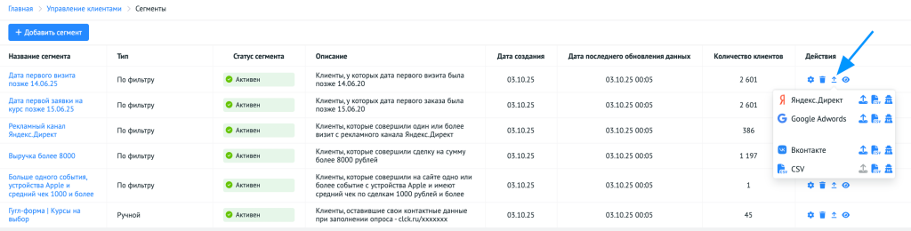 - Сегменты позволяют группировать клиентов не только по чеку или каналу, но и по поведению: