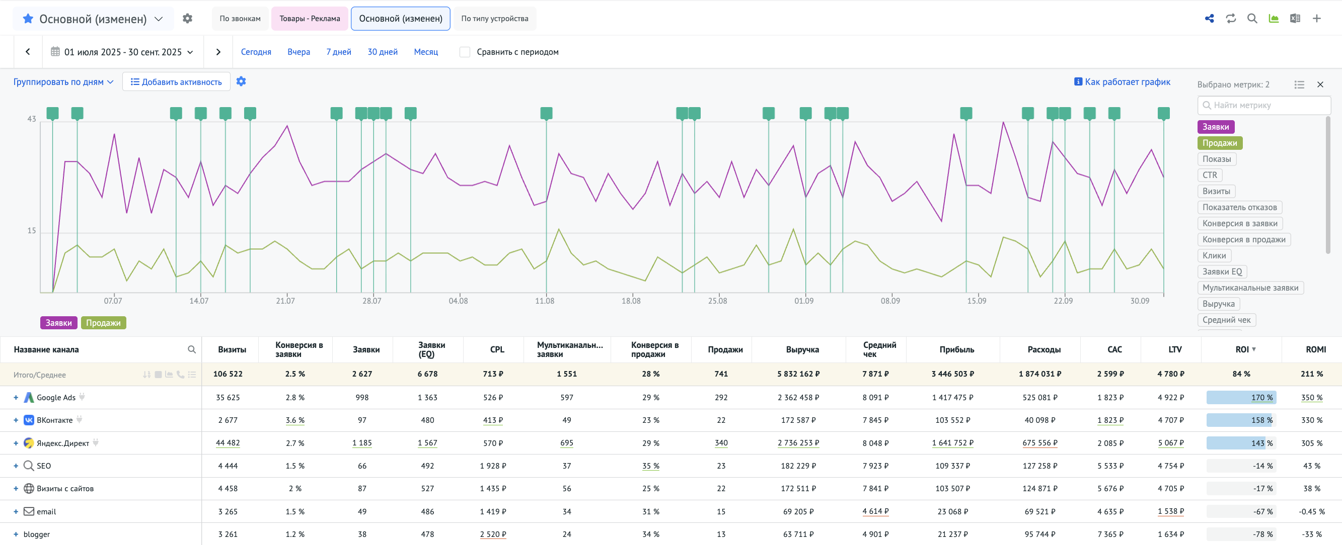 За счёт этого Roistat помогает не просто считать заявки и сделки, а выявлять реальные потребности клиентов, опираясь на поведение, источники, товары и динамику покупок.