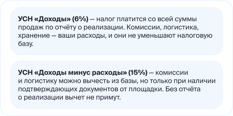 С точки зрения налогового учёта важно запомнить одно железное правило: основа — это отчёт о реализации от площадки, а не банковская выписка.