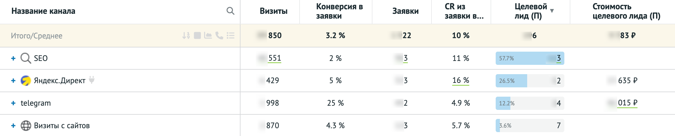 Такой срез помогает быстро оценить качество обработки по каналам: определить, где есть потенциальные клиенты, выявить источники с большим количеством нецелевых заявок и понять реальную стоимость подтверждённого лида. На основе этой информации можно уже принять решения о перераспределении бюджета и оптимизации работы отдела продаж.