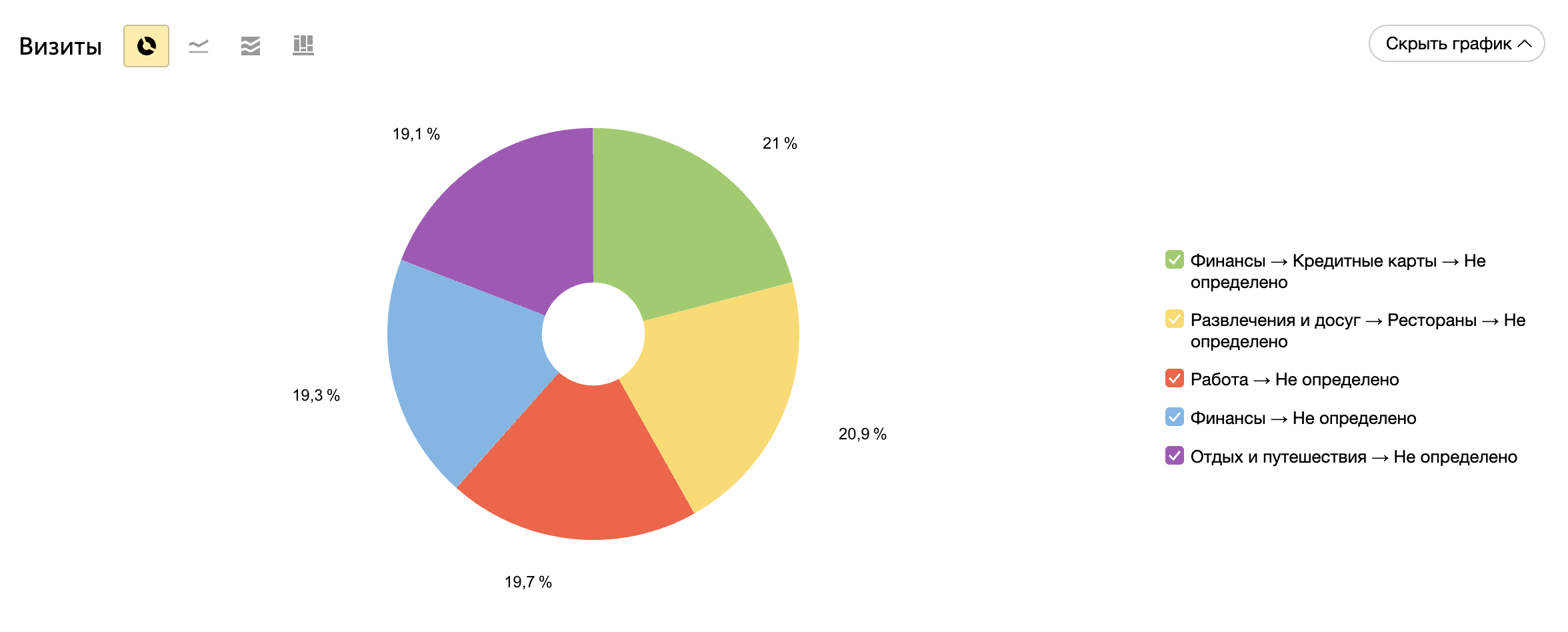 Показывает, чем увлекаются ваши пользователи (например, бизнес, путешествия, сериалы). Системы веб-аналитики следят за тем, что читают ваши посетители, и знают, какие у них интересы.