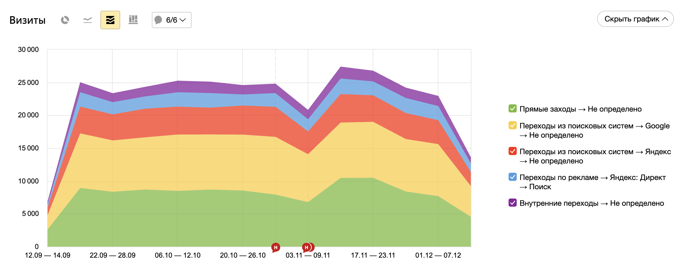 Яндекс.Метрика может отследить, с каких сайтов, поисковых систем, соцсетей и мессенджеров к вам идёт трафик. Отдельно есть интеграция с Яндекс.Директом — можно посмотреть сколько пришло людей с конкретных кампаний и объявлений.